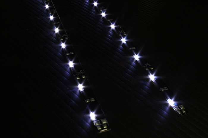 従来のLEDテープとは異なり、光りが横向きに照射されますので、バンパーとライトの隙間等へ差し込み可能。