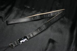 SYNTHETIC LEATHERを使用したエレガントなネックストラップ。