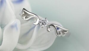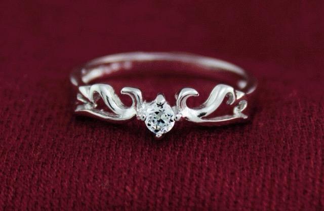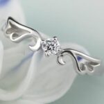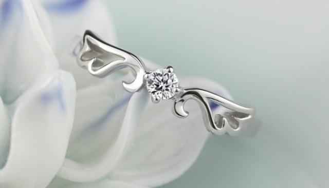 左右に天使の羽をモチーフにしたデザインが施された可愛いリング。